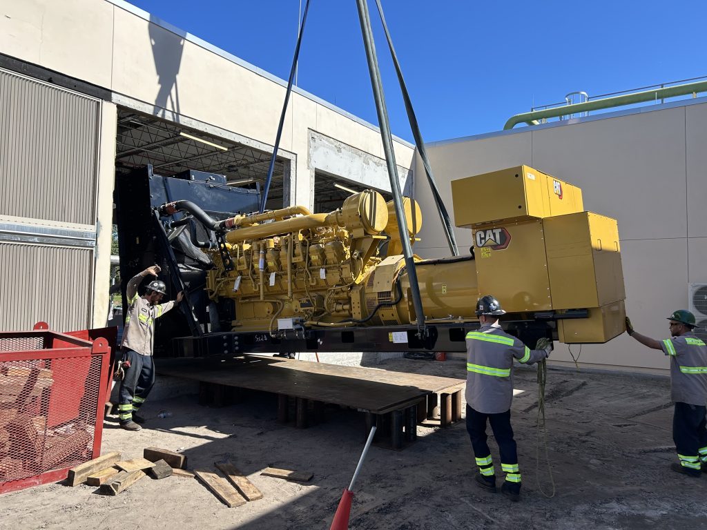In the photos, you’ll see the impressive 450-ton Sims crane setting two new 2MW Ring Power generators along with two fuel day tanks. The Sims Rigging team skillfully received the generators and tanks and pulled them into place once the crane got them partially into the building. The entire operation was completed in less than six hours, all while the hospital maintained full operational capacity.