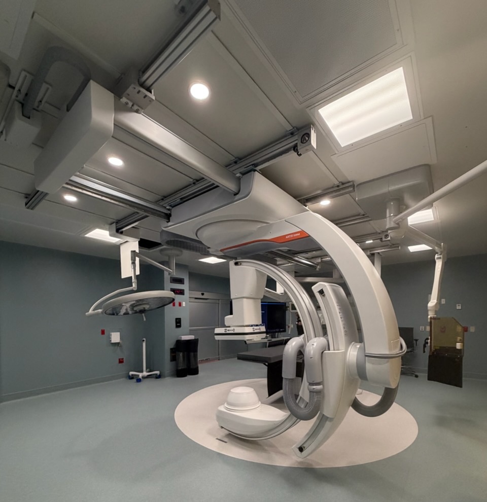 Because the Cath Lab is located on the second floor, the install required careful coordination with hospital staff to access the ceiling of an active procedure room below. Our crew worked closely with the facility team to get the job done safely and efficiently without disrupting patient care.