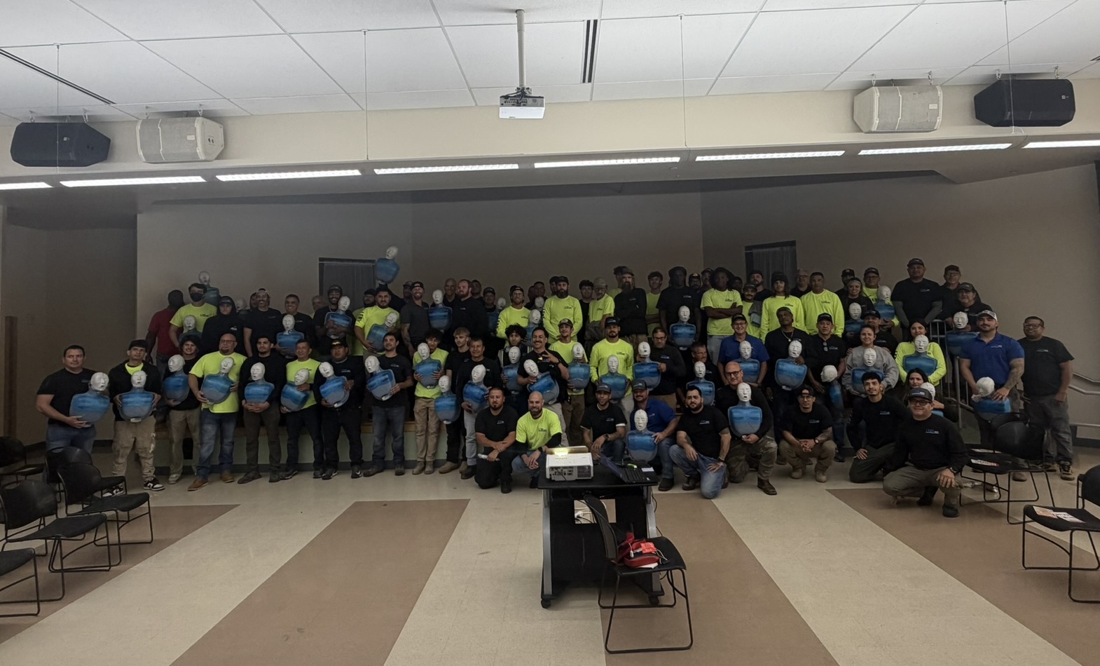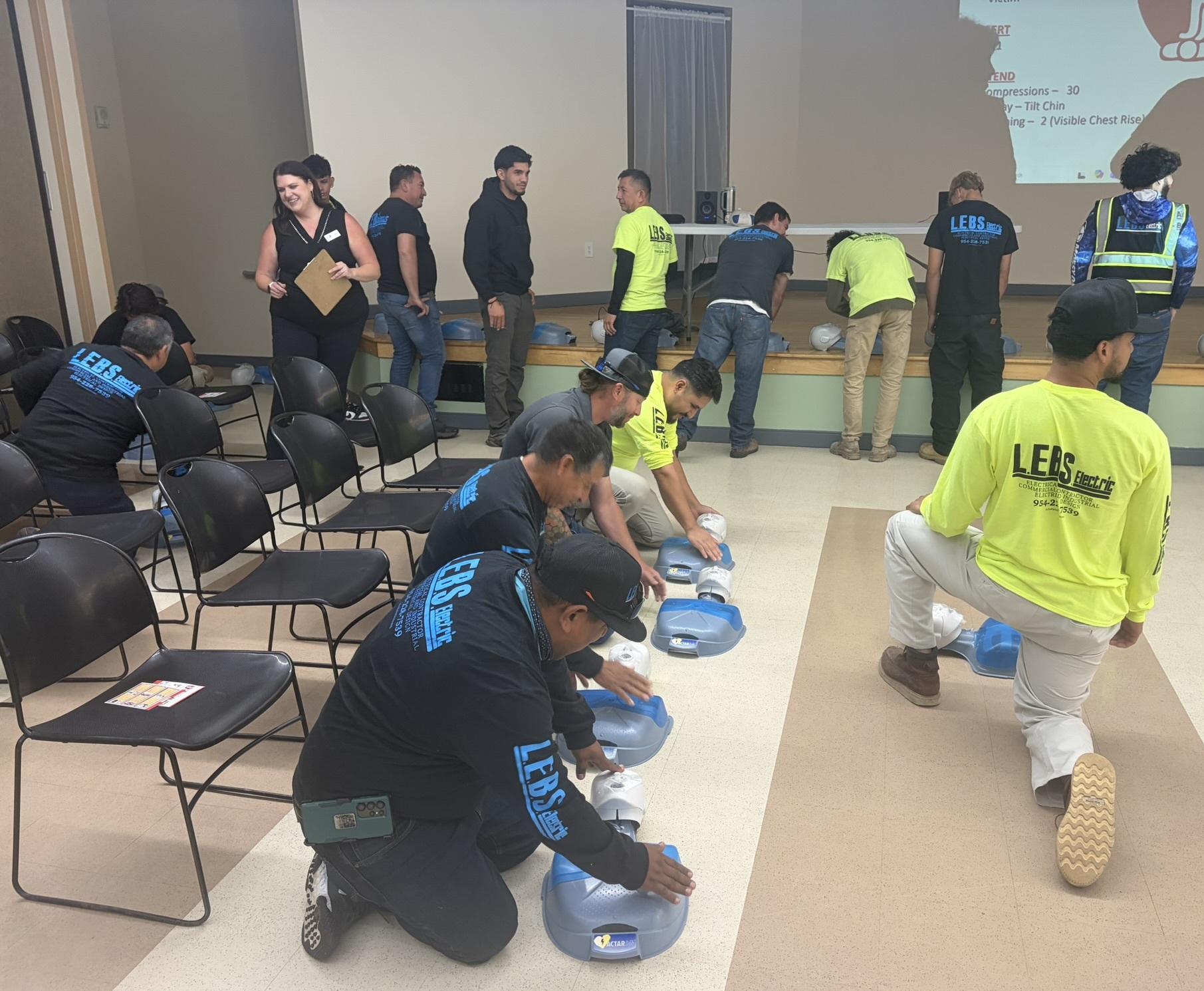 With team members covering job sites from Ocala to Naples, it was an incredible turnout. Nearly 100 employees participated in this hands-on training class that focused on life-saving techniques, proper AED use, and how to safely handle bloodborne pathogens.